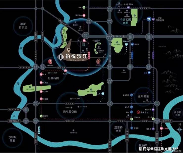 项目位于北区热点版块中离主城最近的北区核心区域,正好处在两江新区各大板块的中心腹地,向南是照母山、人和,向西是礼嘉,向北是蔡家、水土,向东北走就是中央公园。我们可以看到它是被礼嘉、中央公园、蔡家、照母山环绕,这就决定了他可以最快速便捷的享受两江新区区域的配套优势,以大型商业为例,约5分钟即可达到华侨城欢悦里,约7分钟可以到礼嘉商圈/山姆超市,约10分钟可以到爱情海商业,光环购物中心,约2公里可到即将开业的悦来汇商业。