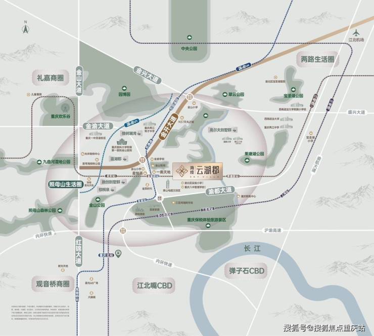 自驾15分钟车程10公里范围内的四大商圈:金州商圈光环购物中心、礼嘉商圈龙湖天街、新牌坊商圈、冉家坝龙湖原著商圈、13分钟—江北嘴国金中心,17分钟—千亿4A级观音桥商圈,解放碑商圈仅需25分钟