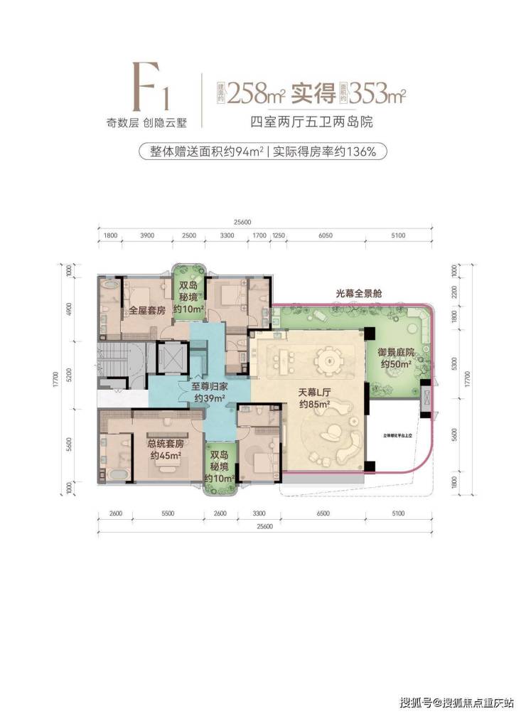 宽庭院|6.8米开间+6.3米挑高+35㎡空中庭院