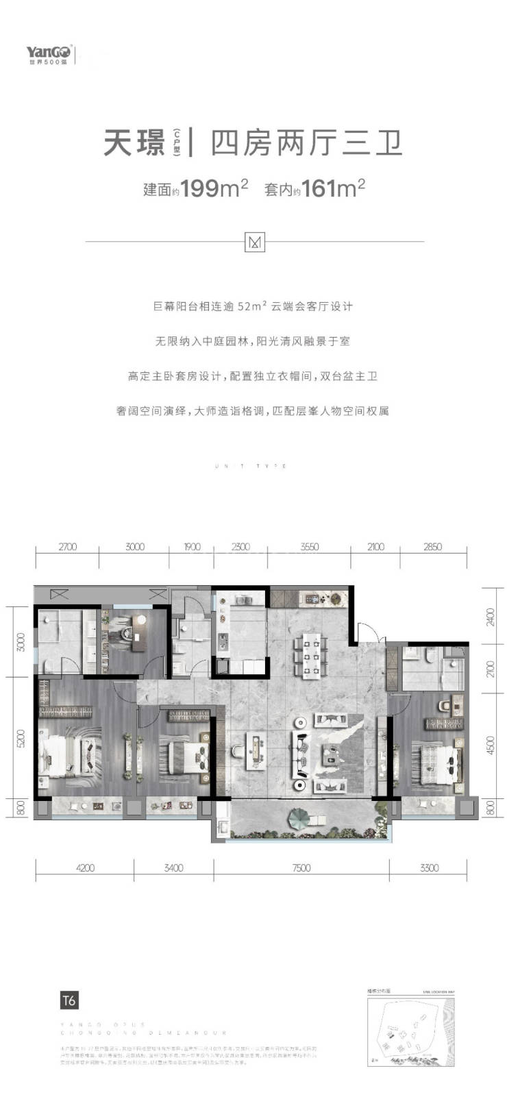 建面约199平套四