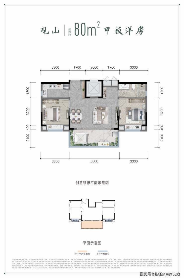 - **空中花园横厅套二80㎡**:一楼花园30 - 99㎡,价格7072元/㎡起。约5.8米宽阔横厅,极大地延伸了全家的生活主场。双主卧设计,让您悦享自在生活。约2.1米空中花园,让山林自然触手可及。