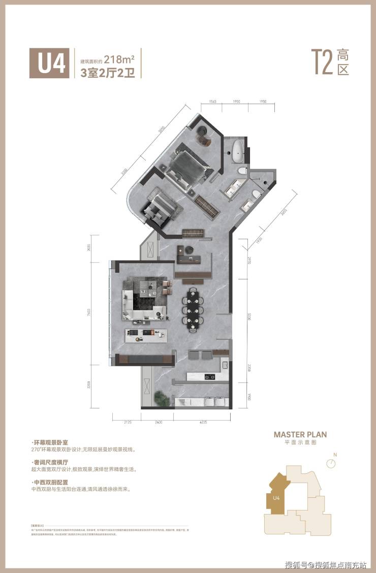 总统级套房主卧·全明空间格局·270°宽幕视野·超尺度层高