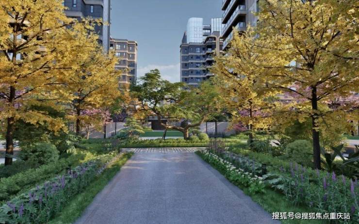 在家之外的公共空间,项目也以凤凰山公园“春凤展翅”为灵感精心打造公园式度假园林,南北向超100m的银杏大道和东西向超60m的蓝花楹景观线共同构成“两轴四园主景观”,四大主题宅间花园、400米标准跑道和3大架空层满足不同年龄段、不同爱好的业主需求。