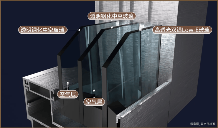 更值得一提的是产品的人性化品质升级——龙湖新绿色·锦江峯萃的窗地比达到约0.36,远超0.25的市场标准。为了提升居住体验,它不惜全系采用三玻两腔门窗系统。在成都,三玻两腔是成都千万级豪宅常采用的门窗工艺。相比常规项目,它能将噪声隔绝提升约10.44%、紫外线透过率下降约63.85%,体感非常明显,当然成本也是常规项目的1.3倍左右。但在龙湖看来,这是好房子必须具备的品质。不仅如此,项目还增加了三玻两腔系统的覆盖范围与面积——和多数项目仅用于客厅与主卧不同,它对次卧的窗墙也进行了升级,照顾到每一位家庭成员的居住体验。