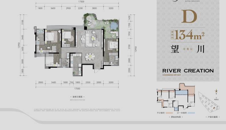 建面约134平套四