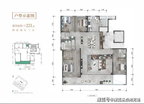 221㎡户型,产品设计上“因地制宜”,并没有一味强求“端厅”,而是选择成熟的方厅设计。