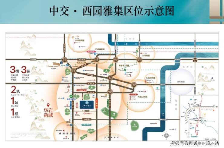 轨道:轨道交通5号线华岩中心站直线距离600米左右;不用换乘直达西站,巴国城,杨家坪,沙坪坝 。