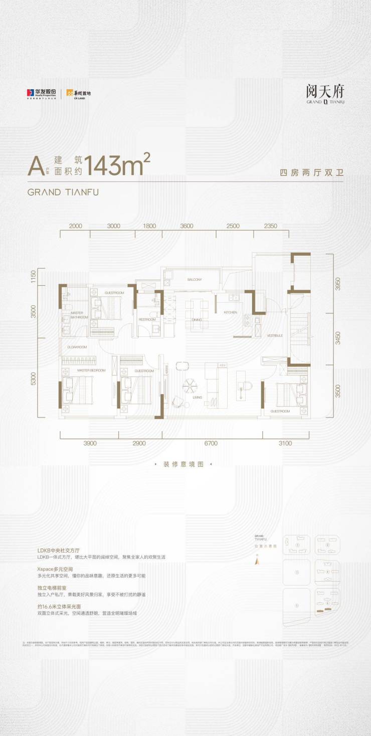 主力建面约199-202-252㎡天际观邸2T2H