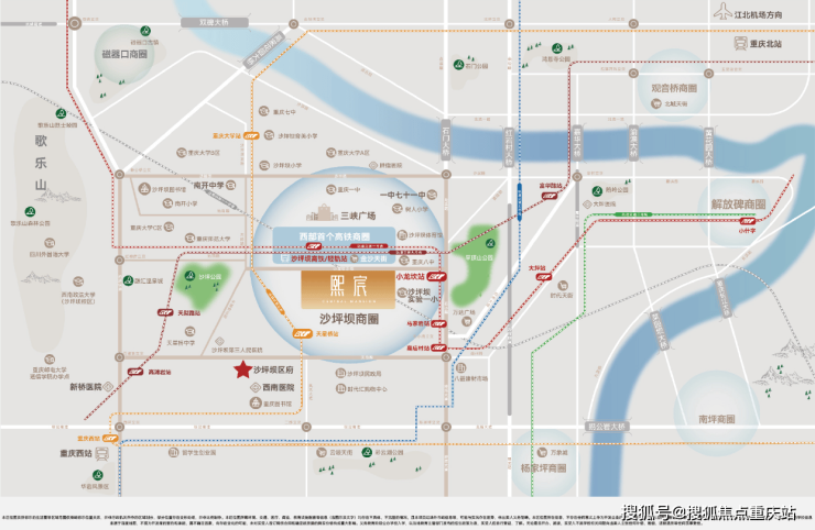 四轨交汇超级换乘枢纽,距沙坪坝高铁站直线距离仅约500米,至1号线、9号线小龙坎站步行仅约600米,快速换乘轨道环线、27号线(在建),畅达主城。