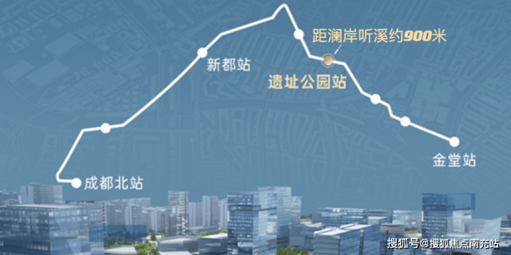 已施工的公交化宝成铁路,最短5分钟一趟,仅4站可到成都北站,项目距最近站点遗址公园站约900米。