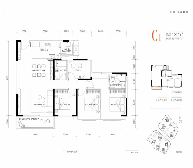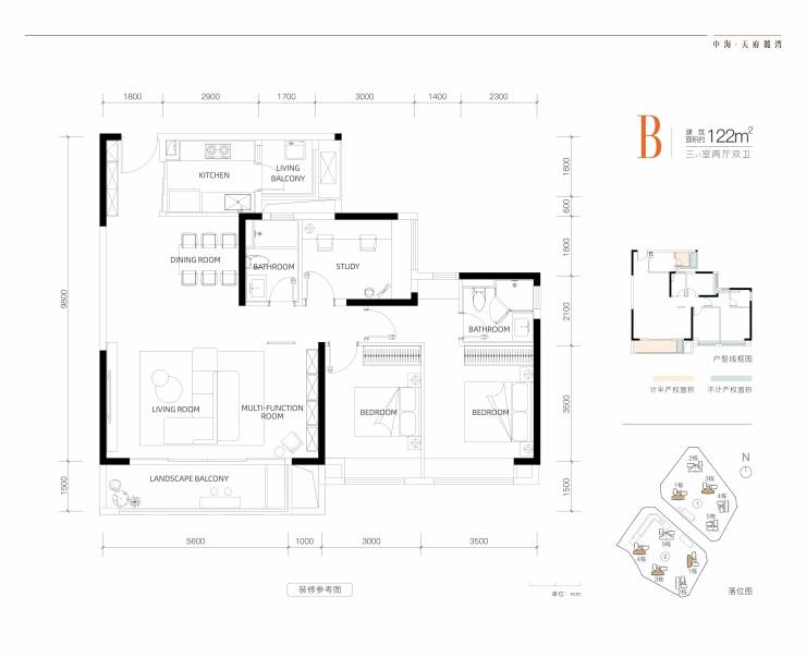-四面宽朝南:四开间全南向设计,约14m南向景观面,采光通风极佳