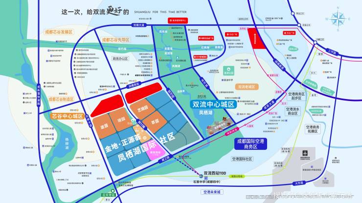 。## 配套设施完善1. **交通**:形成 3 横 3 纵 2 地铁 1 高铁的交通网络,出行便捷,快速畅达城市各处。2. **教育**:周边教育资源丰富,有棠湖中学芯谷校区、棠湖小学(南校区),成都芯谷实验学校、威斯敏斯特公学(英国背景海外学校)等,社区内还规划有幼儿园及小学,满足孩子全龄段教育需求。3. **公园**:出门即可享受约 750 米直径凤栖湖的美景,还能坐享约 8500 亩空港中央公园五湖四海,以及约 7000 余杨柳湖公园,生态环境优越,休闲健身好去处