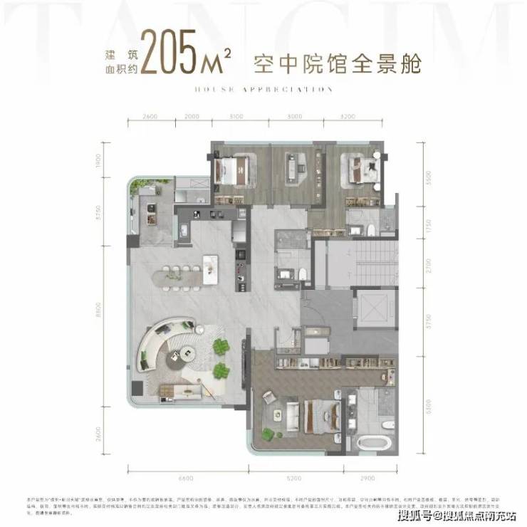 保利新川天珺首开的1号地块,堪称地王之王。首批次104套,面积为约143㎡、约173㎡、约205㎡三种户型。每一户型均通过多次推演,均为上乘之作,其中约173㎡、约205㎡更为出彩。