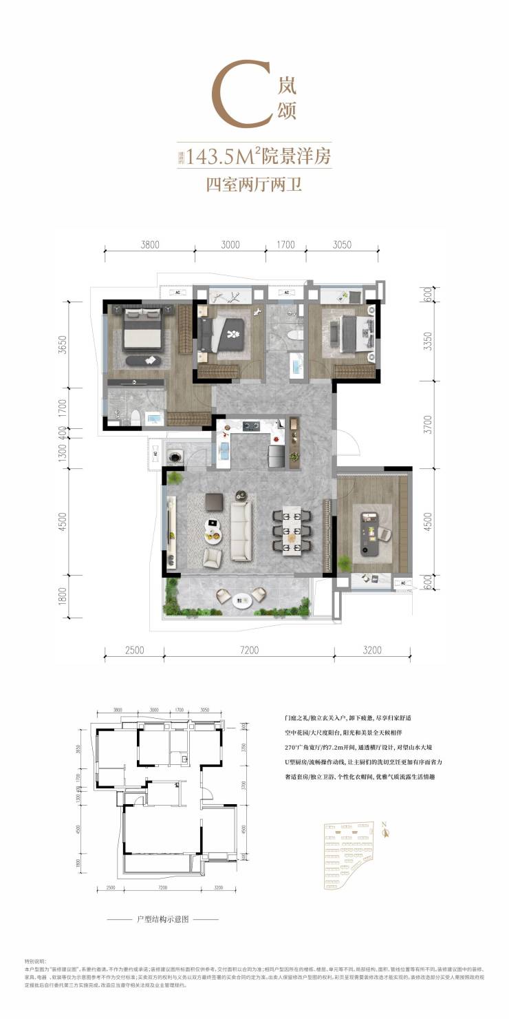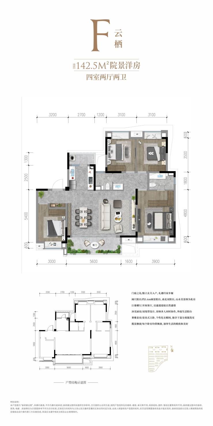 ### 项目基础数据山河赋项目各项数据亮点突出。其占地面积约105亩,建筑面积约16.82万方,容积率仅1.5,绿地率达35%,为居住者营造出宽敞且舒适的生活空间。项目楼栋总数为30栋,其中叠拼21栋,洋房9栋,产权年限70年。建筑类型涵盖花园洋房与叠拼,为购房者提供了多样化的选择。面积区间方面,洋房建面约118 - 143.5㎡,叠拼地上建面约173 - 235㎡。楼层状况为洋房11F,两叠4F,三叠6F,装修状况为清水,建筑类型是板楼,交付时间定在24年8月底 。