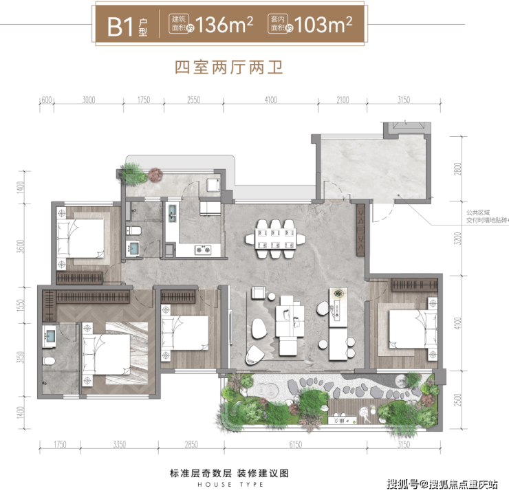 (面积)建面122-136㎡ 四房双卫