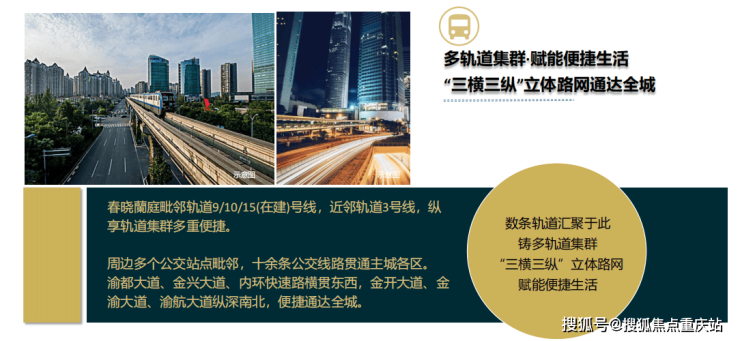 2.好地段:春晓蘭庭位于重庆渝北汽博中心旁,以商务、商贸、行政、居住等多样性名片铸就北城热度汽博板块,串联嘉州,观音桥,照母山,中央公园,踞繁华醇熟住区,尽享重庆向北万千红利。
