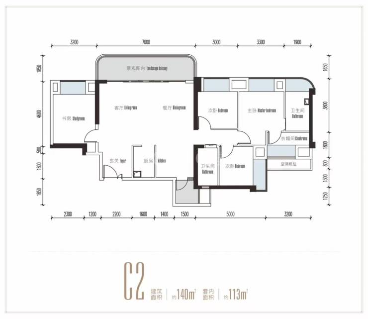 建面约140平套四
