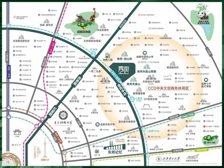 1、 项目1km的城市级资源配套含量非常高,位于中环核心道路线,占据成都环线轨交7号线、距离八里庄地铁站步行仅6分钟,且能近距离换乘1、3、8、17号线,南接西南最大交通枢纽东客站,交通便利;既占据城市级高能核心资源,又具备连片开发形成国际化全新城市界面的基底,未来发展肯定是领先主城其他区域的。