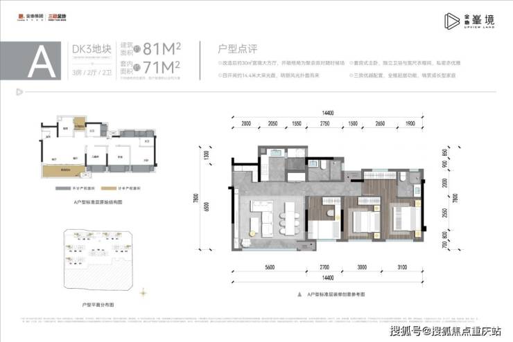 建面约81平套三