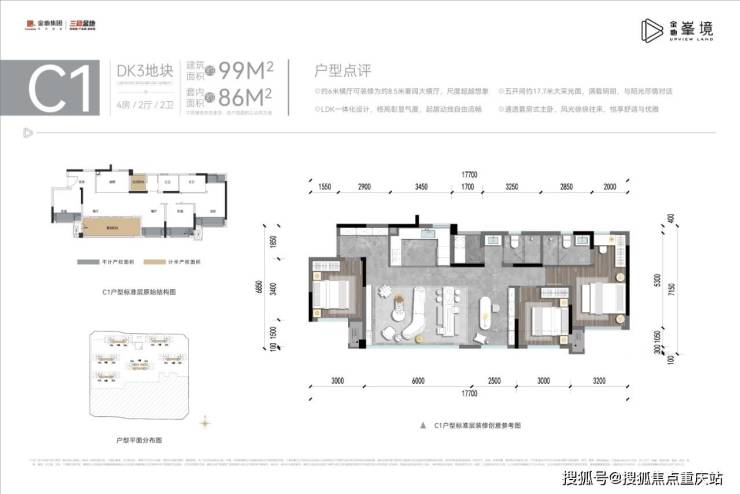 建面约99平套四