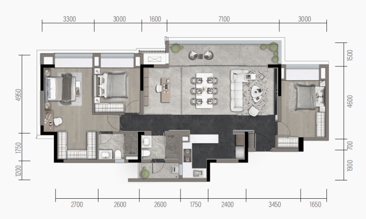 主卧套房:3.3米大开间主卧,私享独立卫浴、独立衣帽间