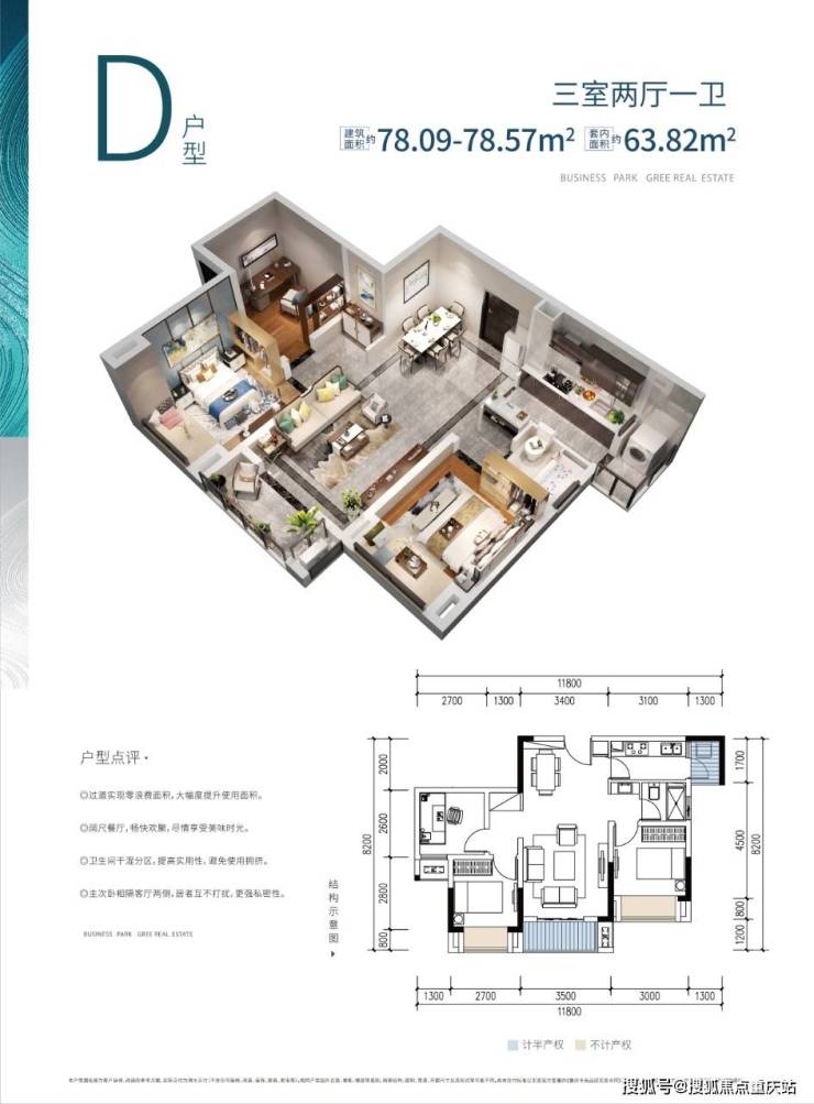 D:78㎡(三室单卫)
