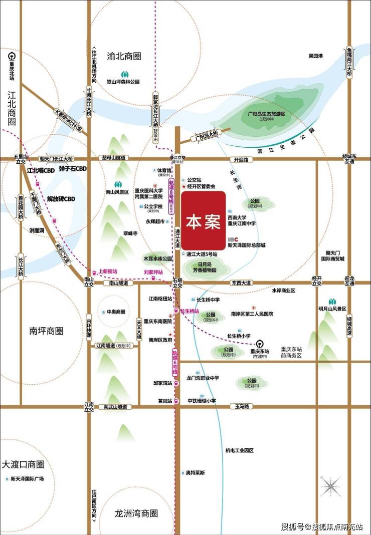 项目距规划中“重庆东站”直线距离约4.5公里,15分钟车程。