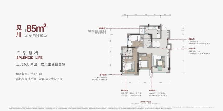 【首开户型】:85㎡/89㎡/95㎡套三双卫