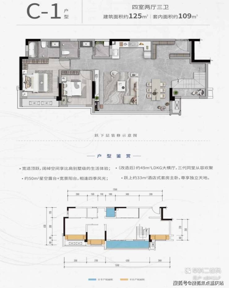【总价】C1-1户型:建面125㎡/套内109㎡,暂时售罄