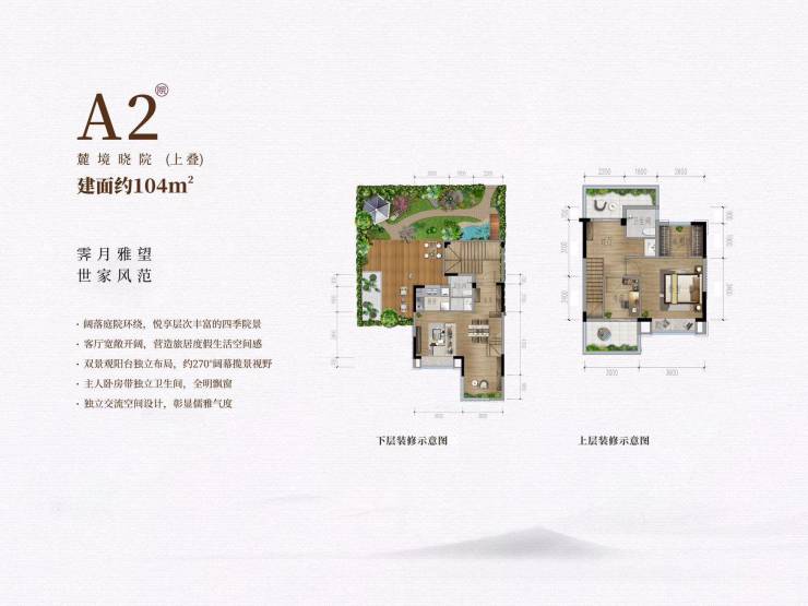 一梯两户上叠,建面104㎡,步梯套三,花园20平,总价110-120万起