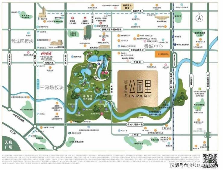 香投大悦城·公园里占据香城中心C位,拥有三横四纵立体交通,据百度地图,在项目3公里范围内,就分布有香城小学、新都一中等优质学校(此处不作为就读依据和购买建议,仅供参考,具体入学信息以当年教育部门通知为准)以及新城市广场、七一国际广场、旭辉广场、润扬商业区等缤纷商业,可谓是一个完美拥有主城烟火的生活场域。