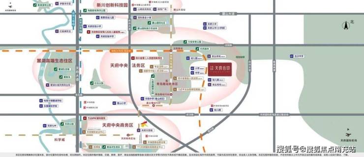 从项目的位置来看,其位于城市中轴线天府大道右翼的天府前湾,该片区是天府新区规划发展中的天府中央法务区。该片区北承高新新川板块,南连天府新区天府中央商务区,西邻麓湖,区位优势明显