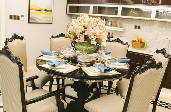 朗阔餐厅与客厅相连,这里成了母亲大展身手的专属舞台,在合理的厨房空间内,精彩研究美食,家人鼓鼓的肚子就是较好的证明。
