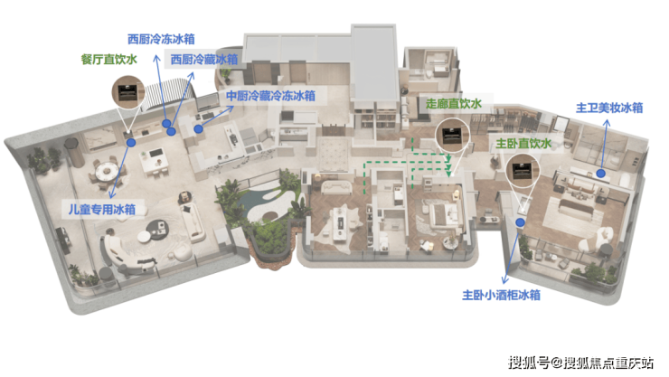例如长者房泡脚池贴心回应西南地区养生习惯;客餐厅、主卧、走廊三处设置嵌饮机(具备RO反渗透膜过滤净化、十档水温可调等功能),实现全屋“十步之内即可喝到饮用水”……太多想不到的细节难以逐一描述,均被收录在《让贝宸S1住更好的108个小故事里》。