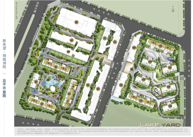 新希望锦粼湖院位于成都市双流区怡心湖板块,紧邻电子科大科技园,地理位置十分优越。项目总占地面积约88亩,容积率仅为2.0,确保了低密度的居住环境。整个项目由16栋建筑组成,总户数548户,旨在打造一个集产、商、住等城市功能为一体的复合型大盘。