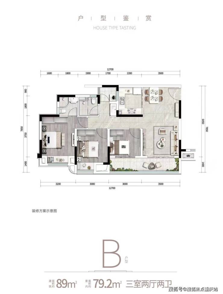 建面89㎡,套内79.2㎡