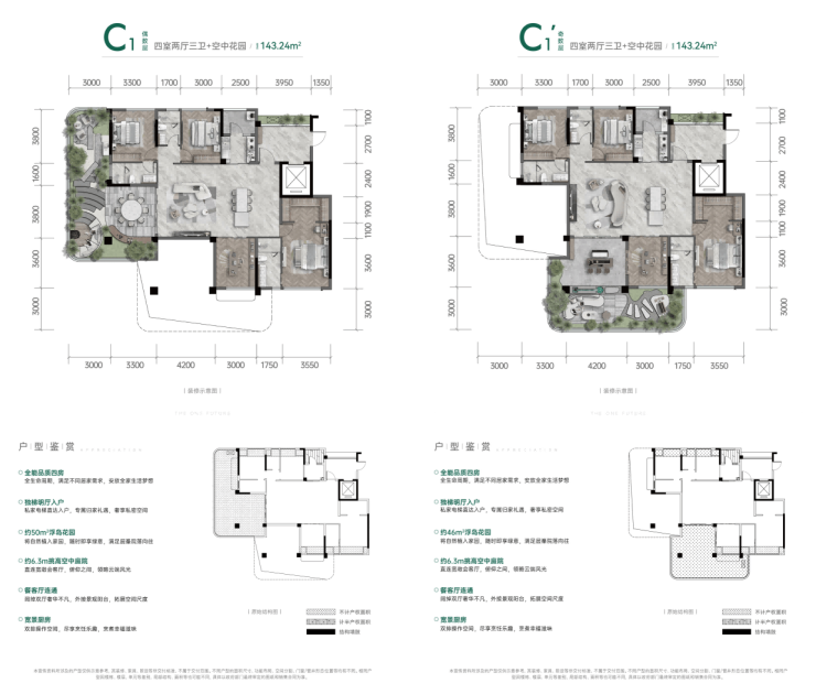顶跃户型166-173-206㎡,实得290-380㎡,