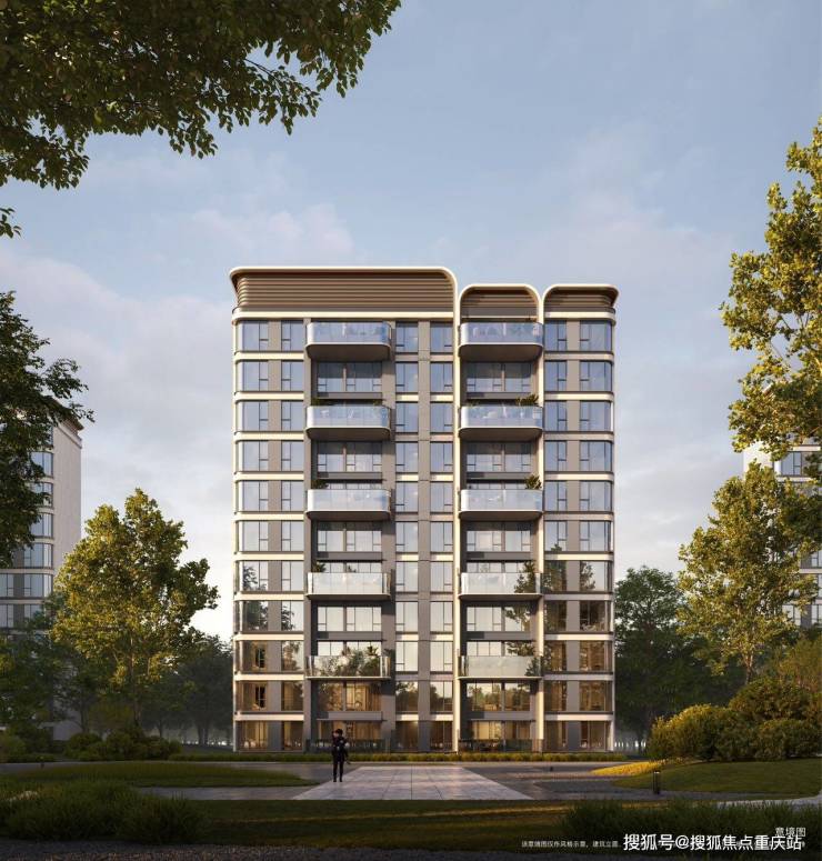现代风格,弧形转角立面,局部铝板 + 玻璃幕墙,颜值高、采光好
