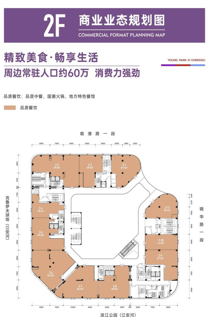 【项目基本信息】和美菁蓉广场由四川和为美房地产开发有限公司倾力打造。项目总占地15.55亩,性质为商业办公。其产品丰富多样,涵盖新派SOHO全能小户与全业态街区旺铺。新派SOHO全能小户方面,装修状况为清水,面积段在34 - 99平米之间,产权为40年(不限购),层高3米,开间4.2米,物业费为3.5元/平米/月。全业态街区旺铺方面,面积段跨度较大,从19平米到580平米不等,主力面积段集中在40 - 60平米,层高约5.5米,全业态经营,楼层分布在负一层至3层。目前,麦当劳、浙文眼镜、爱达乐等知名商家已签约入驻。