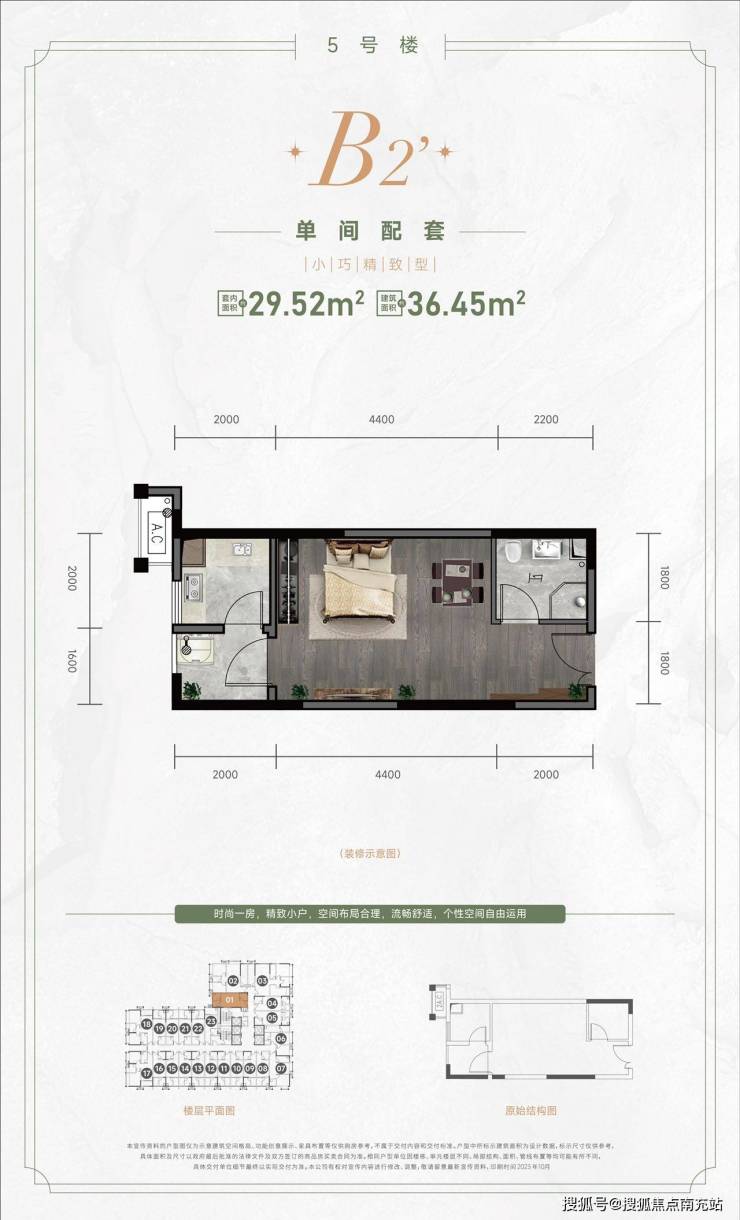 B5户型建面43.35-48.82㎡ 套内35.11-39.54㎡