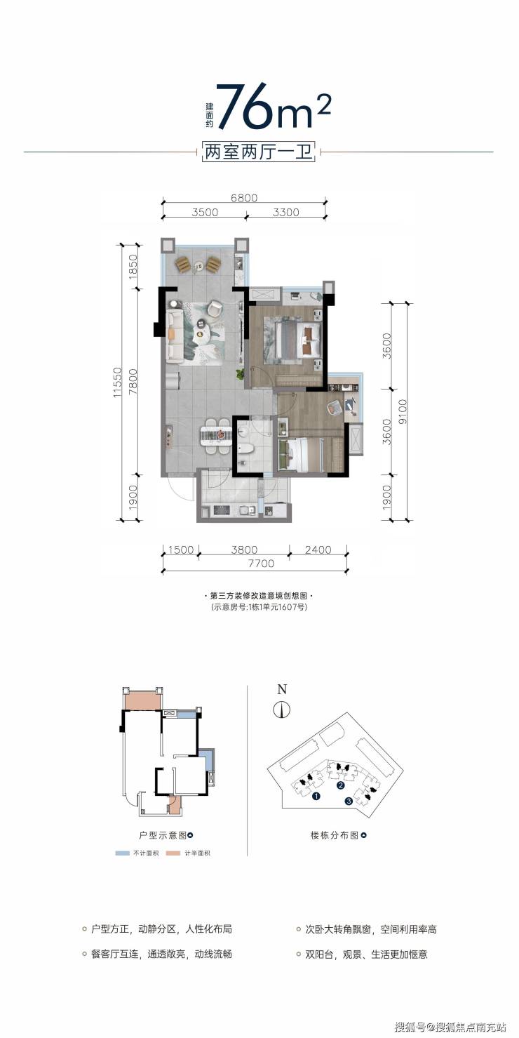 A1户型:76㎡|2室2厅1卫