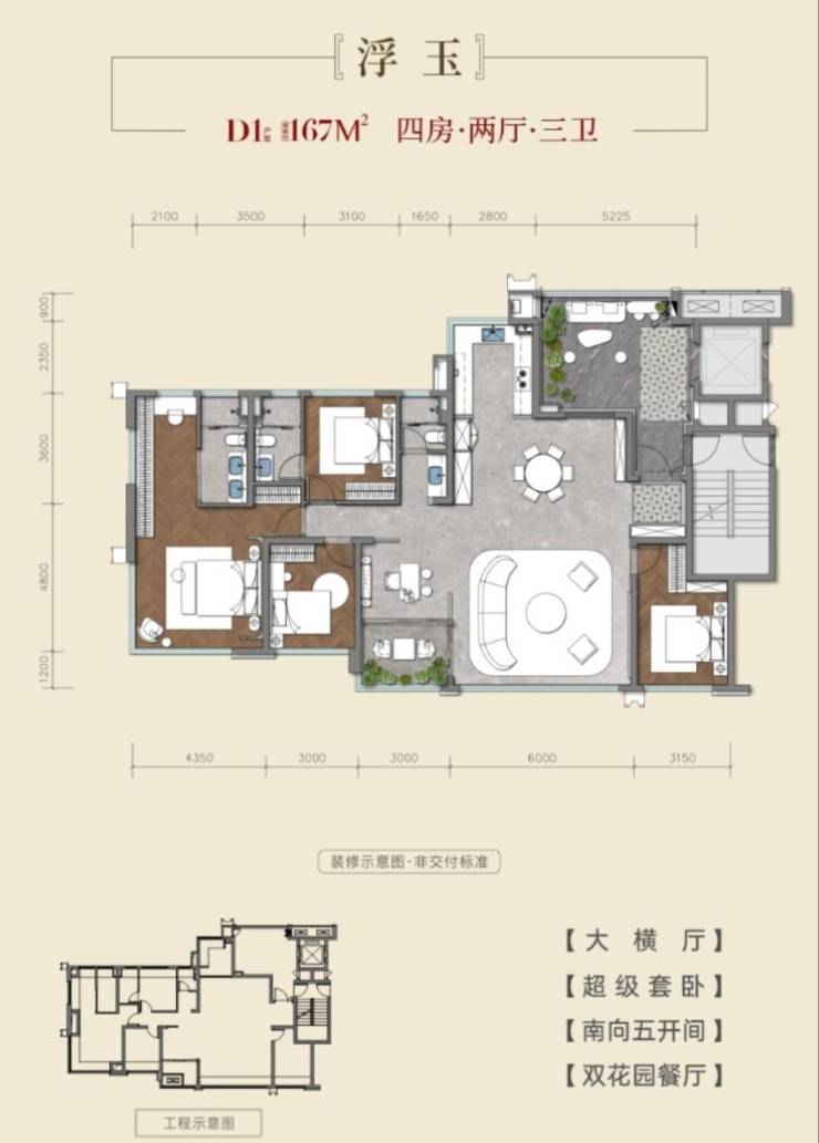 建面约167平套四