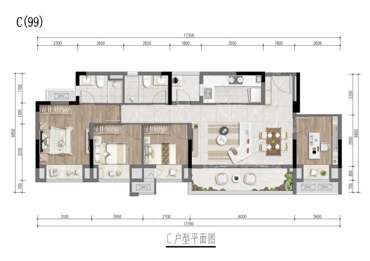 建面97㎡ 套内86㎡ 四房双卫(精装)