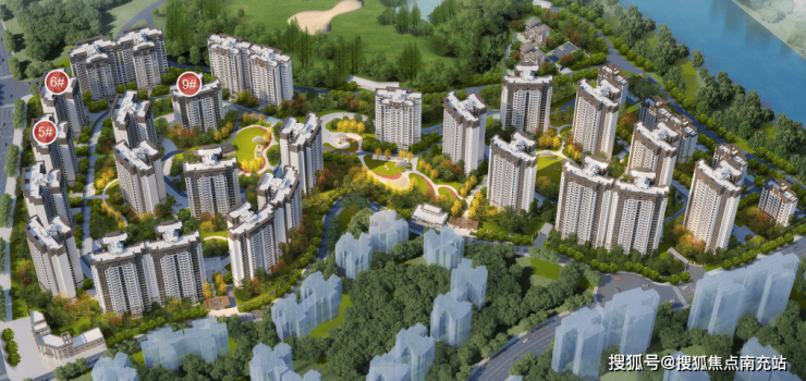 2、最优居住环境:一河三公园围绕 1500金山深林公园+3公里河滨公园+1200亩高尔夫球场,生态居住区域。