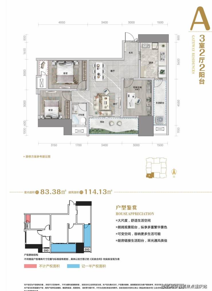 建面114.13m 套内83.38m 端户