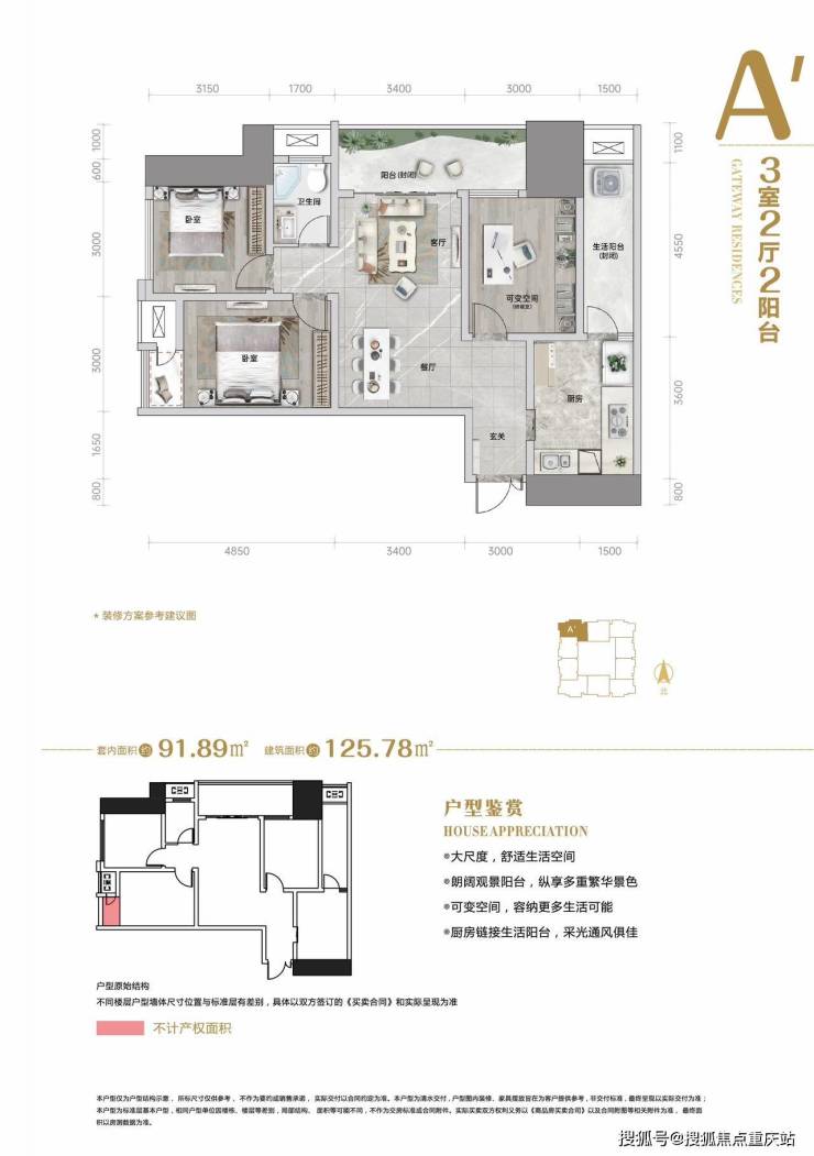 建面125.78mi 套内91.89mf 端户(样板间)