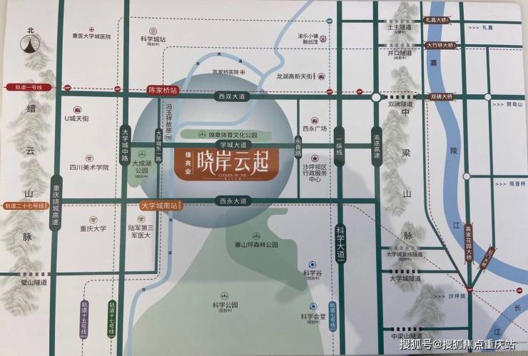 三轻轨环绕,1号线陈家桥站运行中,15号线陈家桥站建设中,15,27号线大学城南站规划中