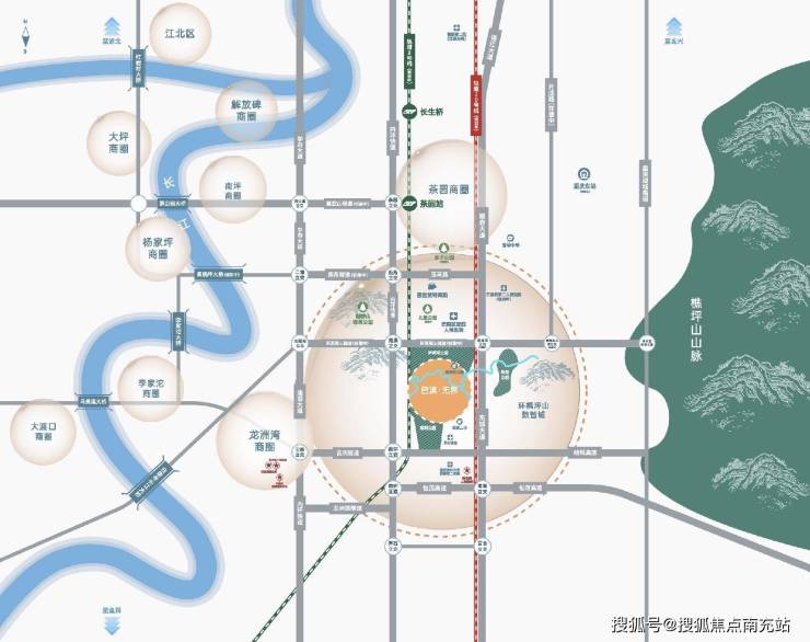 5)双轻轨(20号线(龙兴—界石,规划中);8号线(途径重庆东站—干坝子站,规划中)) 项目临近东城大道,经东城大道往北可快速到达鹿角、茶园板块,经真武山隧道快速到达南坪商圈,往南经吉庆隧道可快速到达龙洲湾商圈。