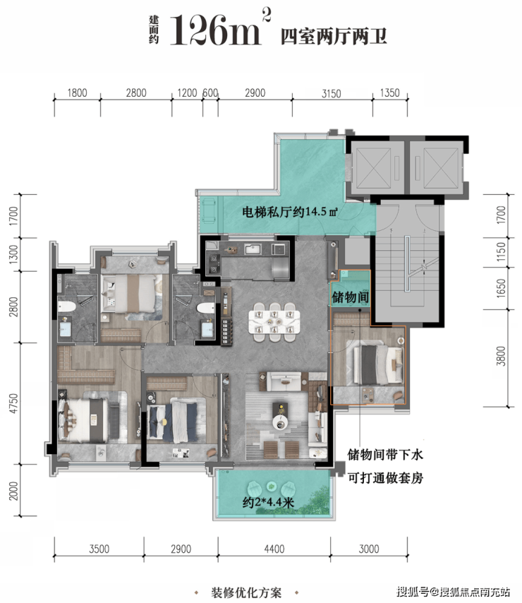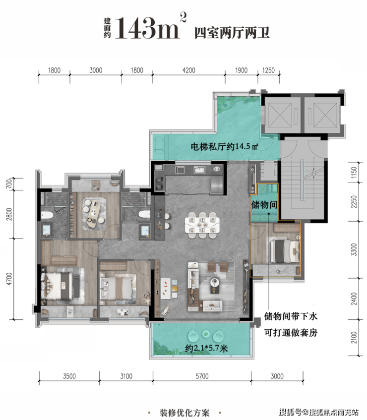 面积段有建面约126㎡、143㎡四房双卫,约173㎡四房三卫,以及约206㎡五房三卫,全2T2板式结构。