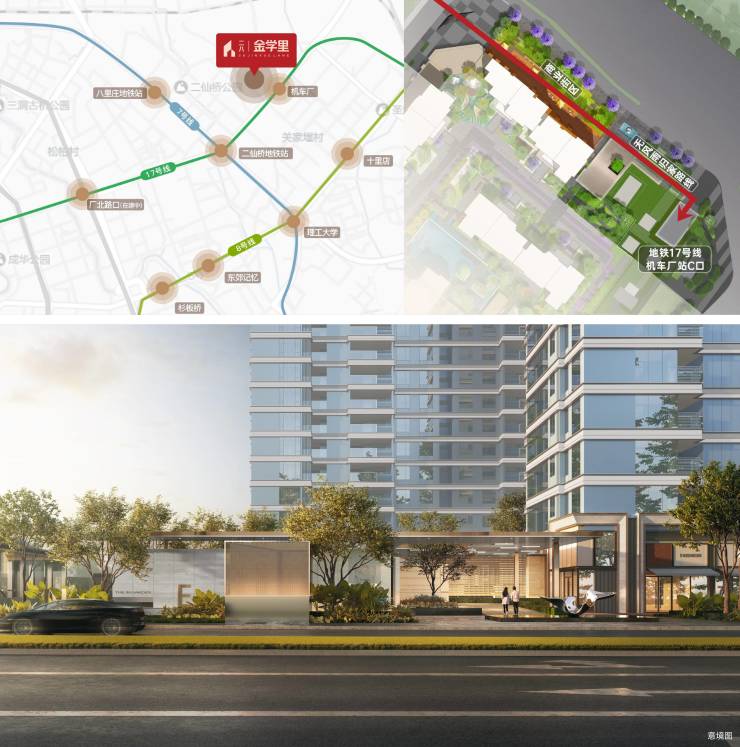 •项目1.5公里内有机车厂、二仙桥、八里庄、十里店四个地铁站点,最近的17号线机车厂站C口出站即达项目,是周边众多小区、七中英才学校前往地铁站的必经之路,人群来往不绝。